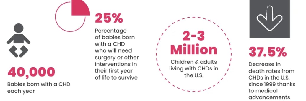 Over 40,000 babies are born with CHD annually in the U.S., and millions of adults and children are living with CHD worldwide.